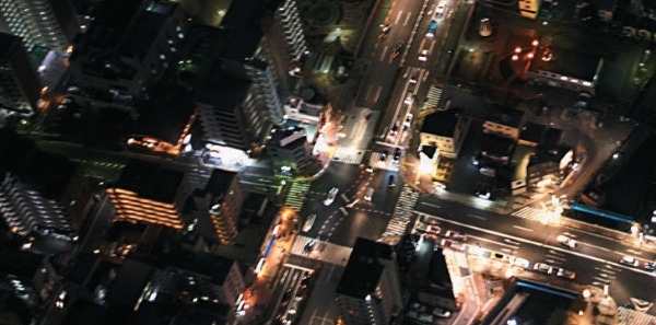 ナイトビューをかけてみると、光のギラつきが抑えられ、